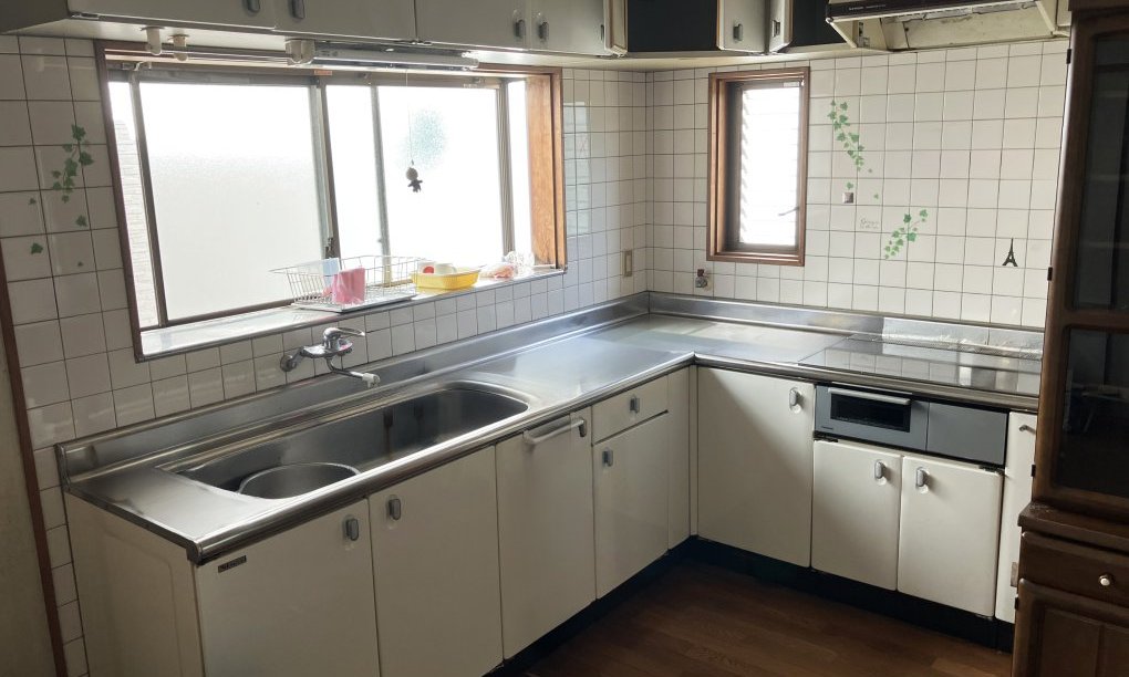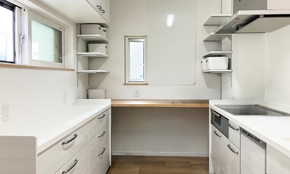 既存の独立型キッチンから、リビングダイニングを見渡せる対面式キッチンへレイアウトを変更しました。料理をしながらお子様の様子を見守れる、家族や友人との会話を楽しみながら作業ができるなど、キッチンが「孤立した場所」から「家族が集う場所」へと変わります。