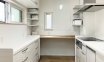 ご家族やゲストとのコミュニケーションを楽しみながらお料理ができる対面式キッチン。背面には、食器や調理家電をたっぷり収納できるカウンタータイプのカップボードを設置。広々としたカウンタースペースは、盛り付けや配膳の一時置きにも便利です。造作の収納棚は、日常使いのアイテムから、お気に入りの雑貨まで、見せる収納と隠す収納を効果的に使い分けられます。面倒な食後の片付けをサポートするビルトイン型の食器洗い乾燥機を搭載。手洗いの手間を減らし、ご自身の時間を大切にできます。センサーに手をかざすだけで水が出る自動水栓を採用。調理中の汚れた手で水栓を触る必要がなく、衛生的で節水にも貢献します。デザイン性と実用性を兼ね備えたこのキッチンで、毎日の料理の時間をより豊かで楽しいものになります。